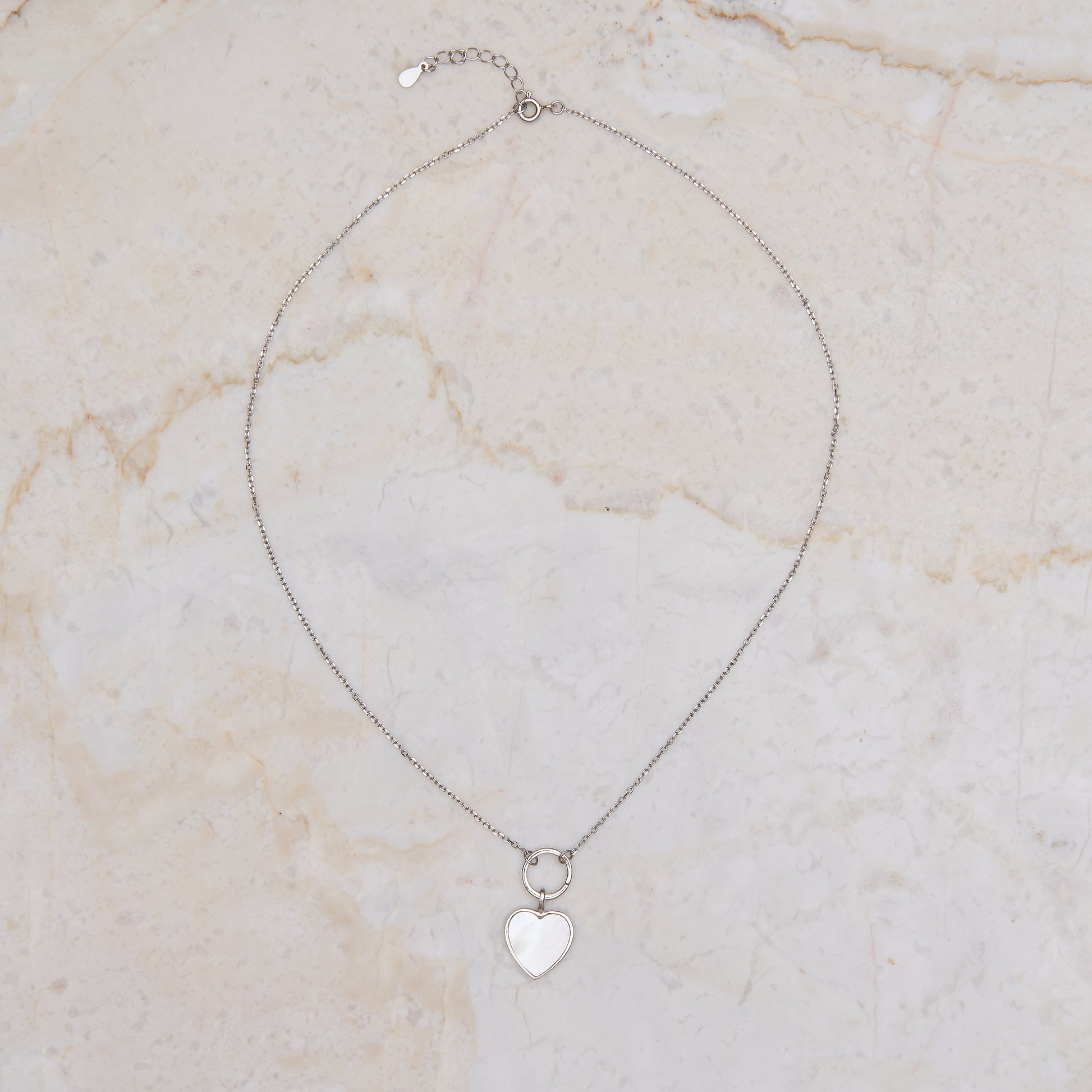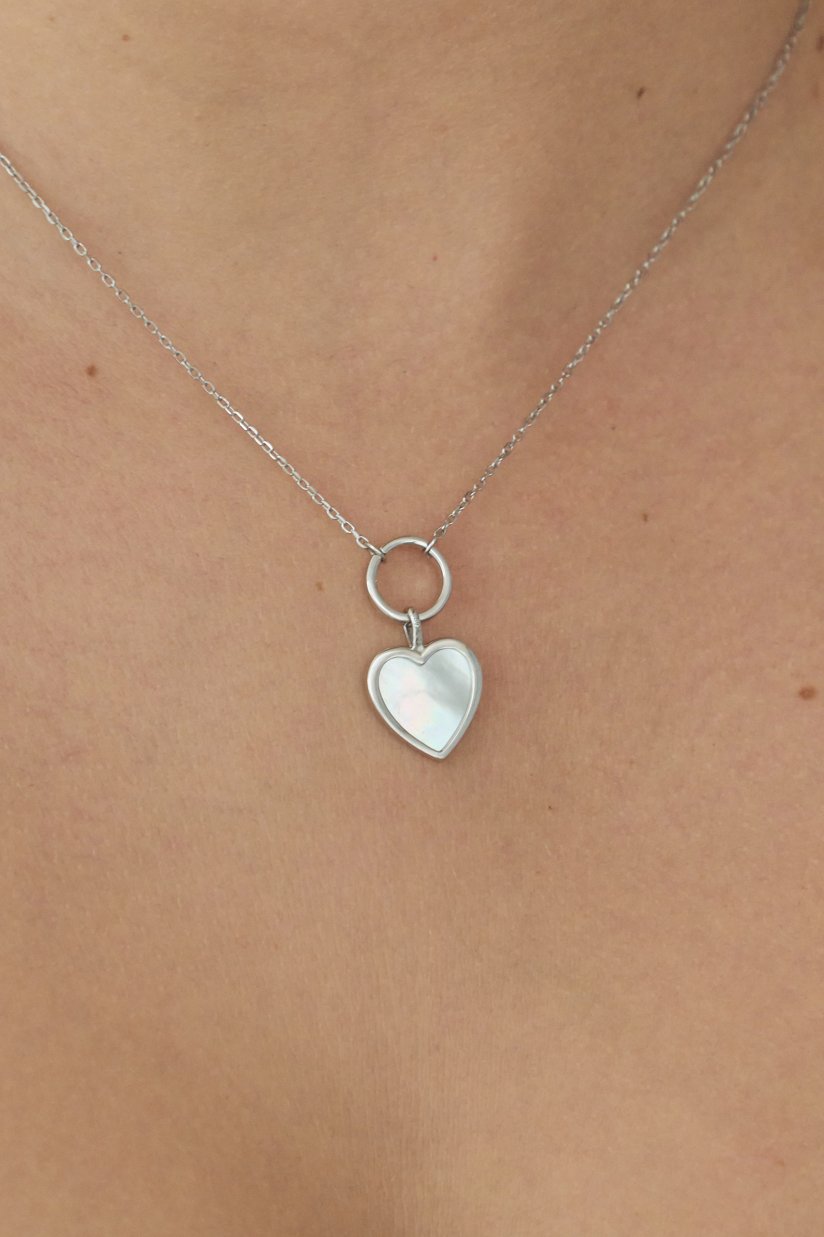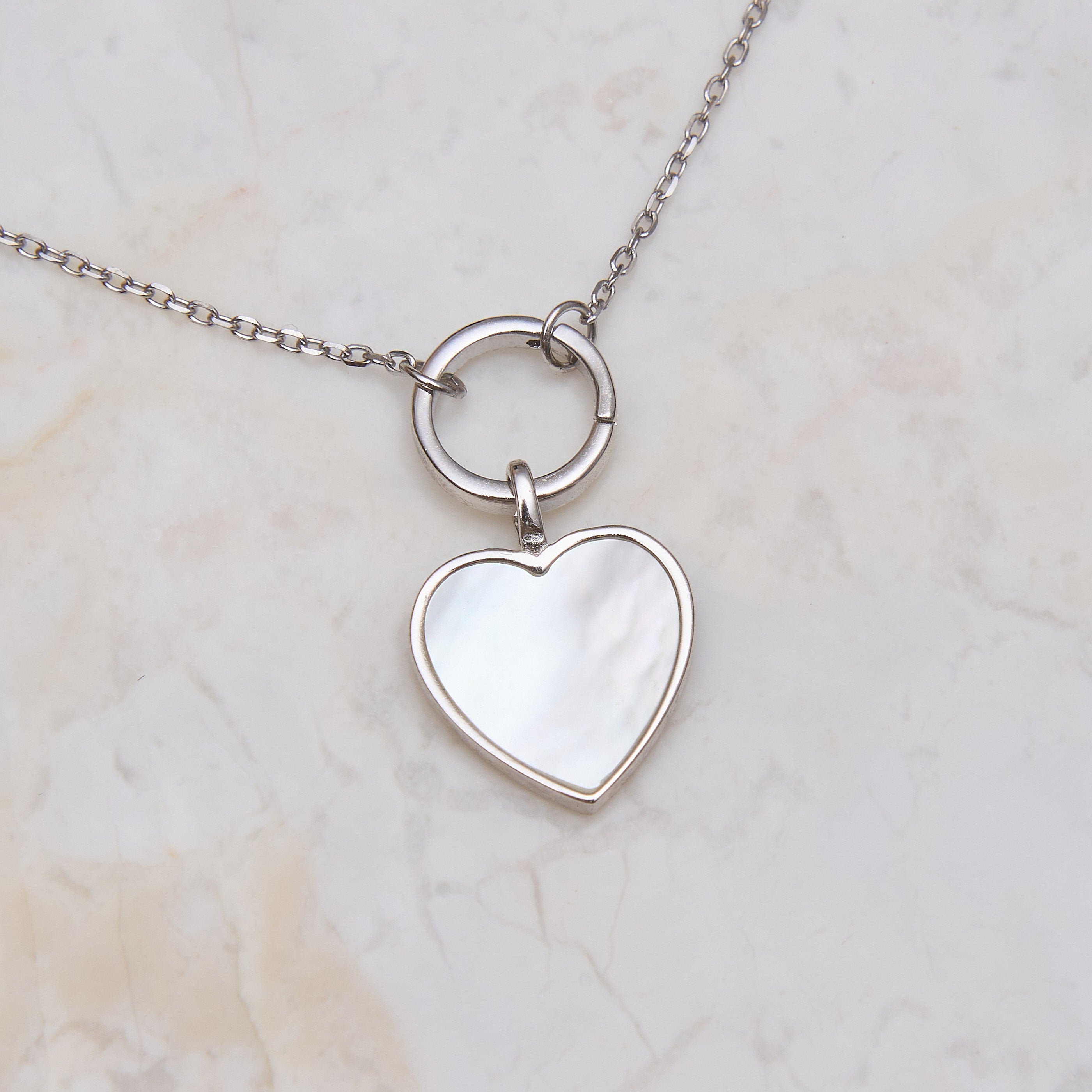 The Lunara Necklace showcases a heart-shaped mother of pearl charm that can be worn on or off the chain, offering ver...